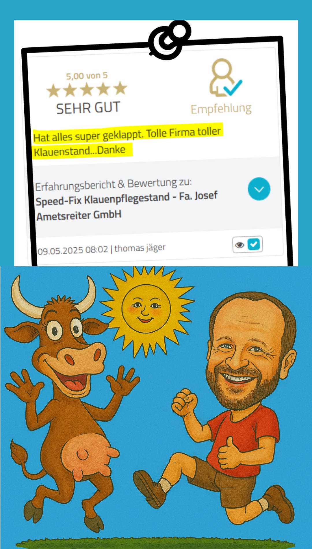 “Darum wurde in Produktion gegangen. Die Nachfrage ist überwältigend – wir liefern im Durchschnitt bereits jeden Tag zwei Speed-Fix Klauenpflegestände aus!” erzählt Sepp Ametsreiter stolz.
